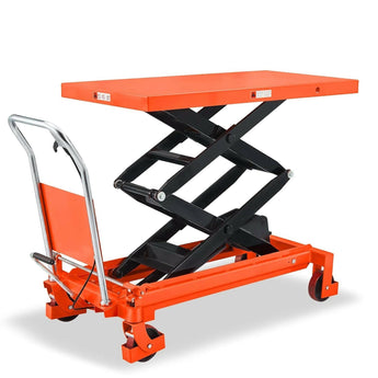 Tory Carrier Scissor Lift Table includes a lifting design with a manual hydraulic table pump to boom up and down. This lift table lift and lower loads. A durable hydraulic pump ensures the scissor lift table has a long service life. Safety back guard. The lift table is designed for vertical lifting only. Do not use the unit for lifting personnel or overhead lifting.