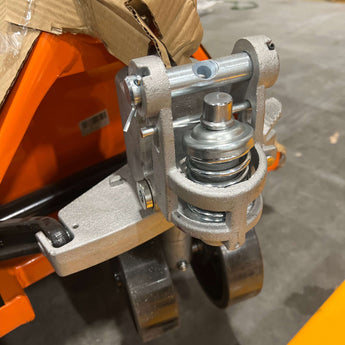 Built for durability and operator comfort, this pallet jack features a 3-function ergonomic hand control (raise, neutral, lower) and long-lasting powder coat finish. The 27" x 48" forks offer smooth lifting from a lowered height of 3" to a raised height of 7.3".