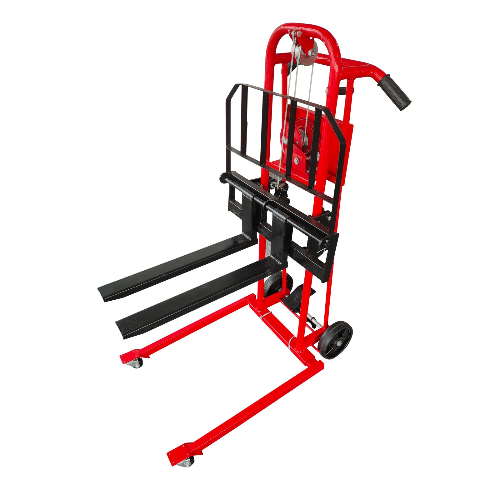 Equipped with a reliable hand winch, this stacker allows controlled lifting without complex electronics, reducing maintenance and simplifying use.