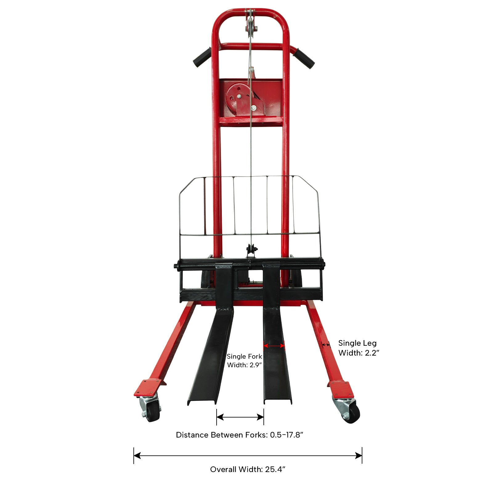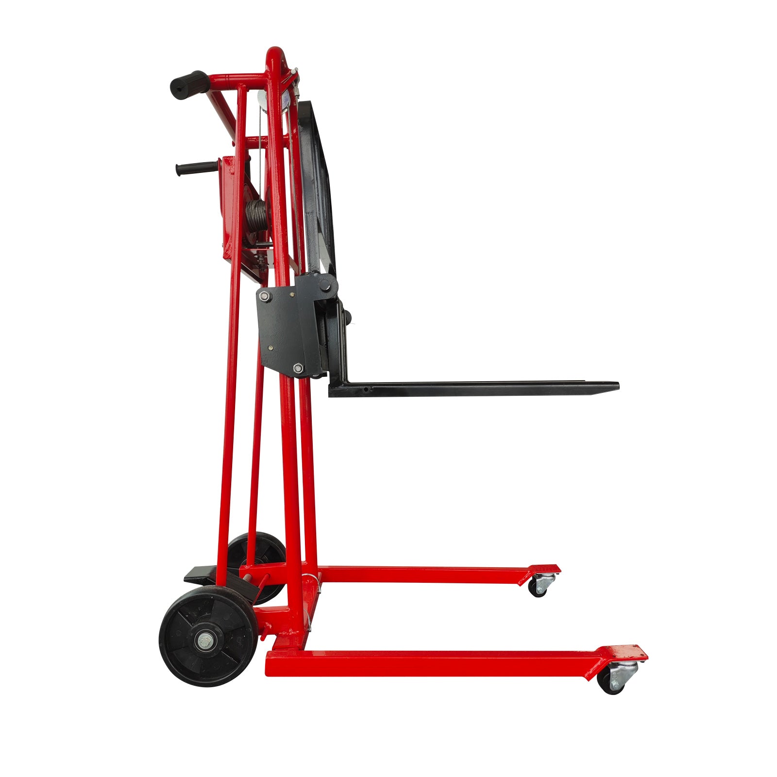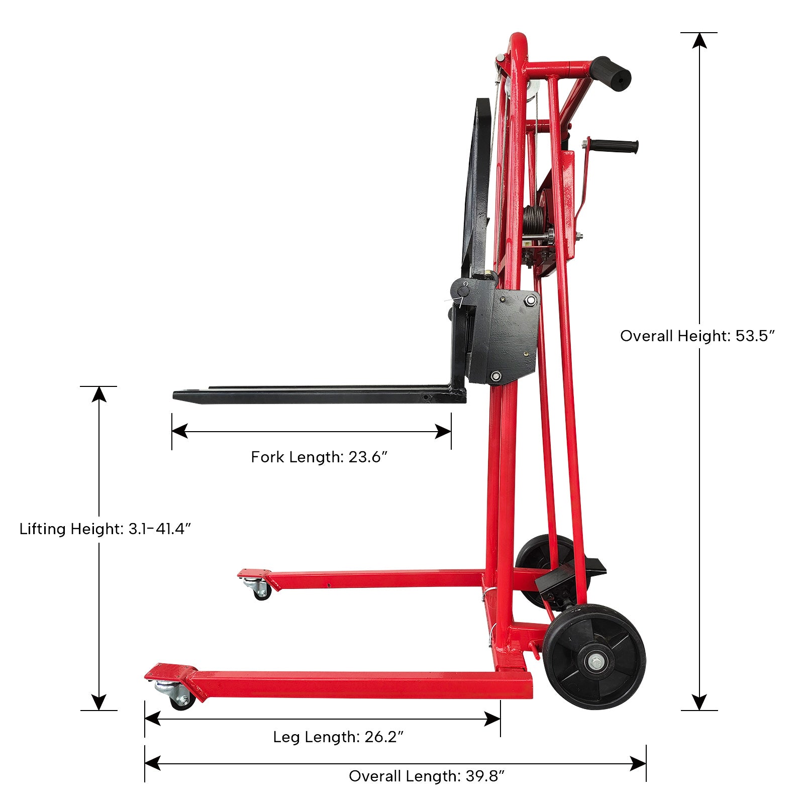 Manual Material Lift Stacker 500 lbs Capacity, 41.4" Lift Height – Pallet Jack Truck with Swivel Casters & Adjustable Forks (Red)