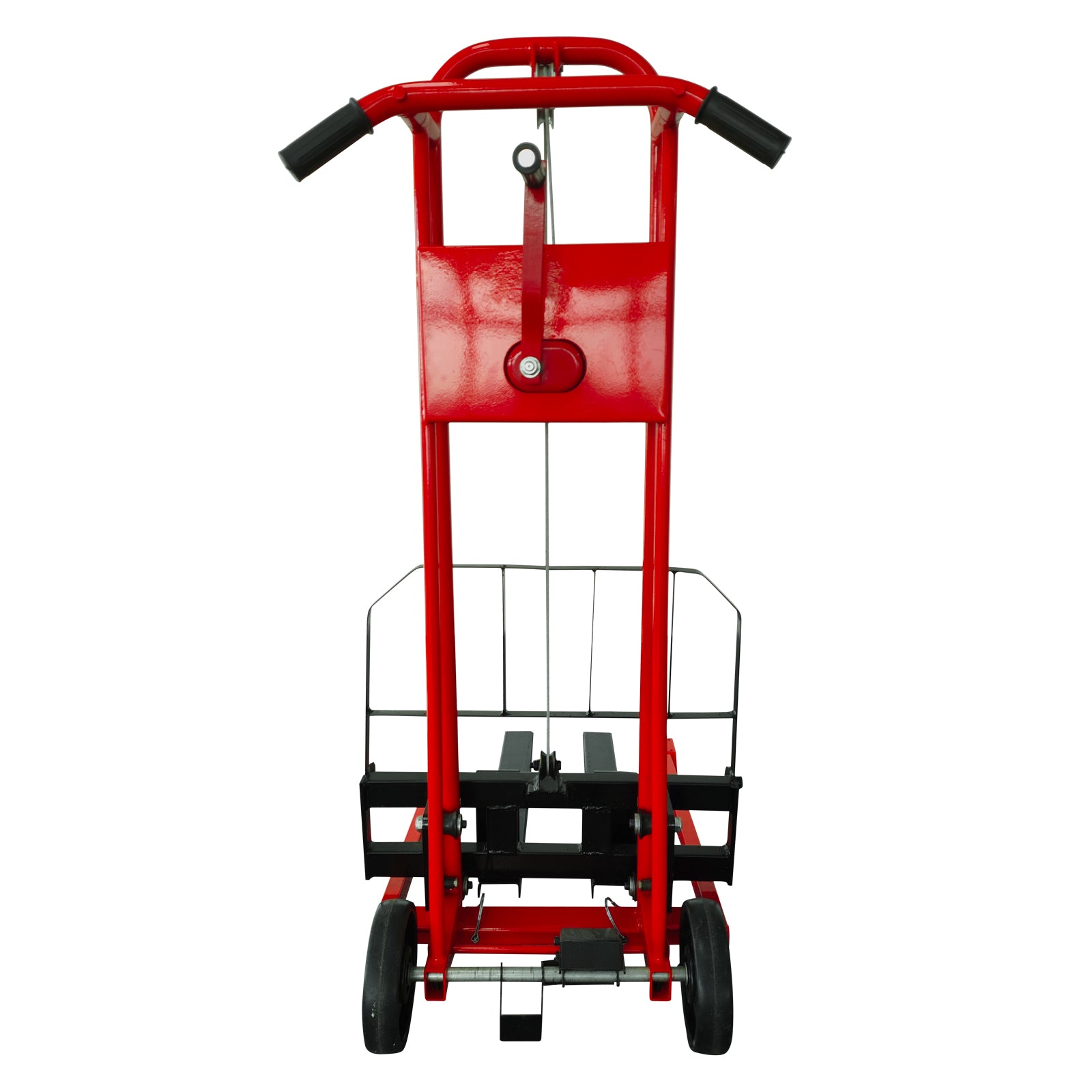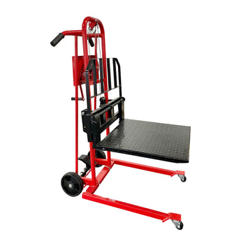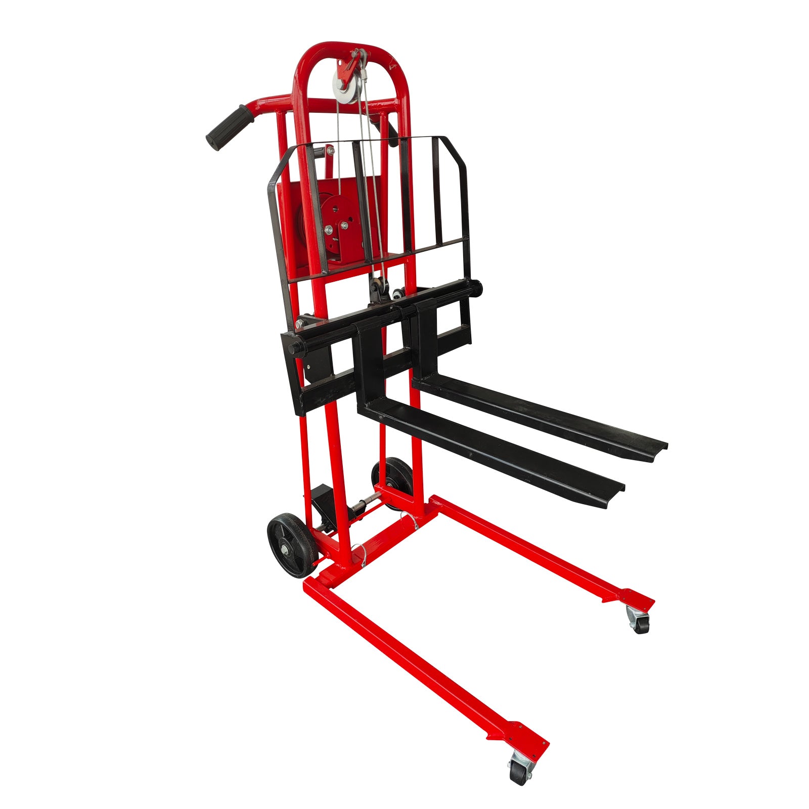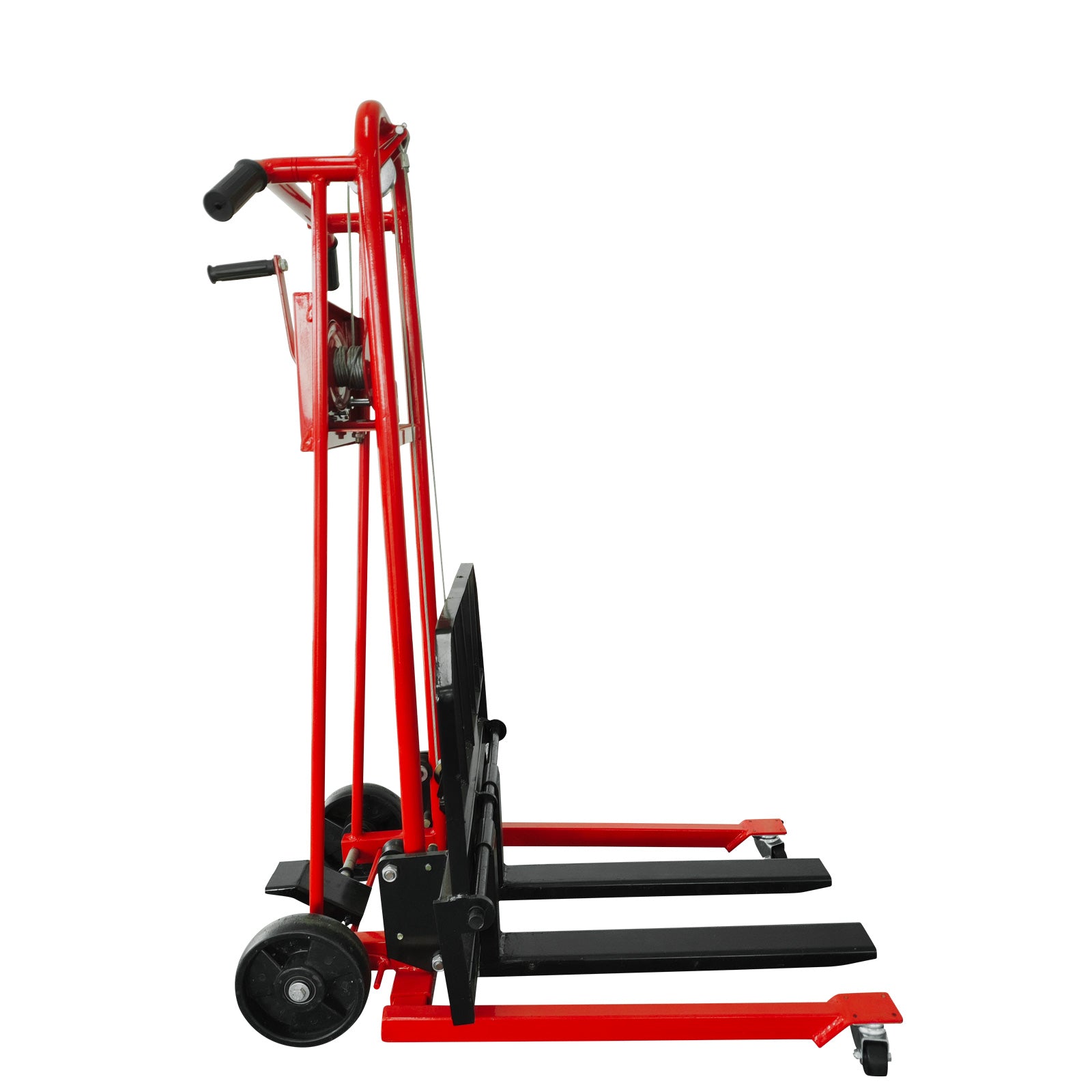 Manual Material Lift Stacker 500 lbs Capacity, 41.4" Lift Height – Pallet Jack Truck with Swivel Casters & Adjustable Forks (Red)