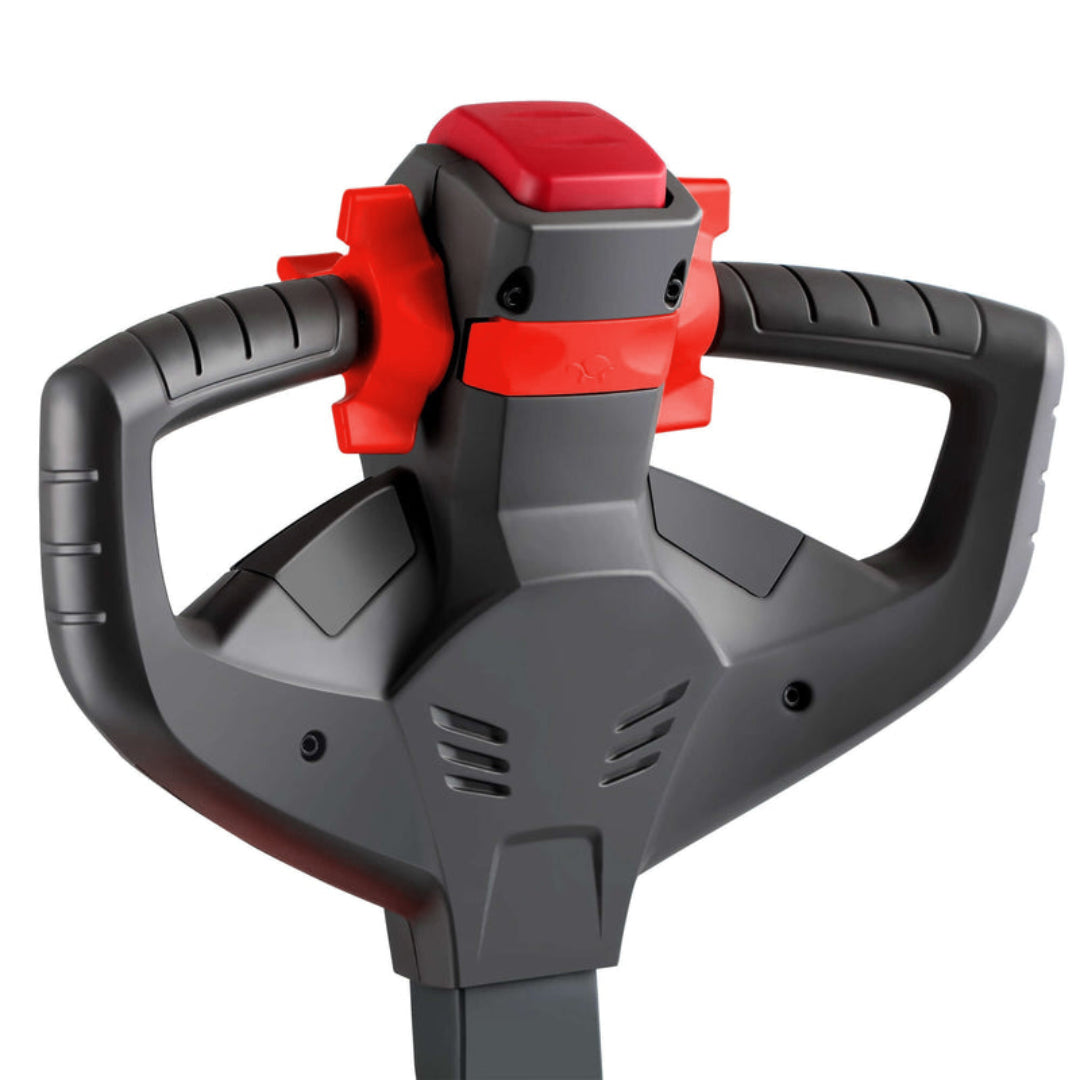 Apilador eléctrico totalmente eléctrico con patas a horcajadas, capacidad de 3300 lb, 118 pulgadas, color rojo
