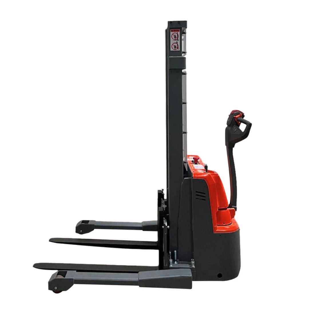 Un apilador completamente eléctrico cuenta con elevación y accionamiento eléctricos , lo que lo hace más fácil y eficiente de operar que un apilador manual, que normalmente solo tiene elevación eléctrica.