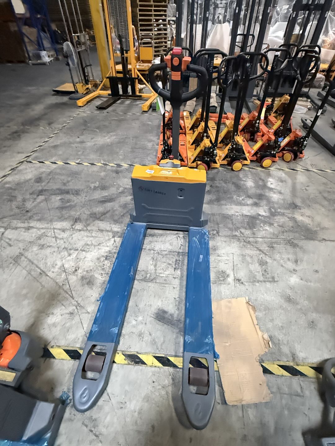Mejore sus operaciones con la transpaleta eléctrica de TORY CARRIER. Diseñada para un manejo sencillo en espacios reducidos, cuenta con un nuevo mango ergonómico con función de baja velocidad para una conducción fluida. El potente motor sube pendientes del 5 % con carga completa, mientras que la resistente cubierta exterior metálica garantiza un uso prolongado. Con un mantenimiento rápido, mangos desmontables para un almacenamiento compacto y una estabilidad mejorada gracias a su sólido bastidor de acero y horquillas acanaladas, esta transpaleta ofrece un rendimiento fiable. La seguridad es prioritaria gracias a un sistema de frenos de alto par para una parada segura, lo que la convierte en la solución perfecta para un manejo eficiente de materiales.