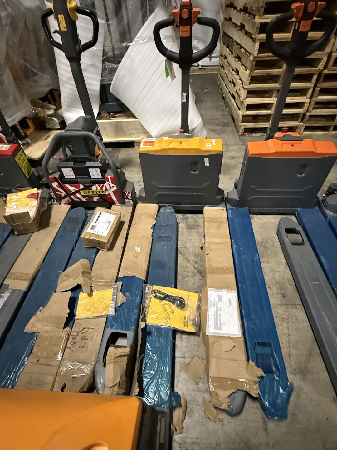 Transpaleta eléctrica de 3300/4400 lb de capacidad con horquillas de 48" de largo x 27" de ancho, diseño liviano con batería de litio