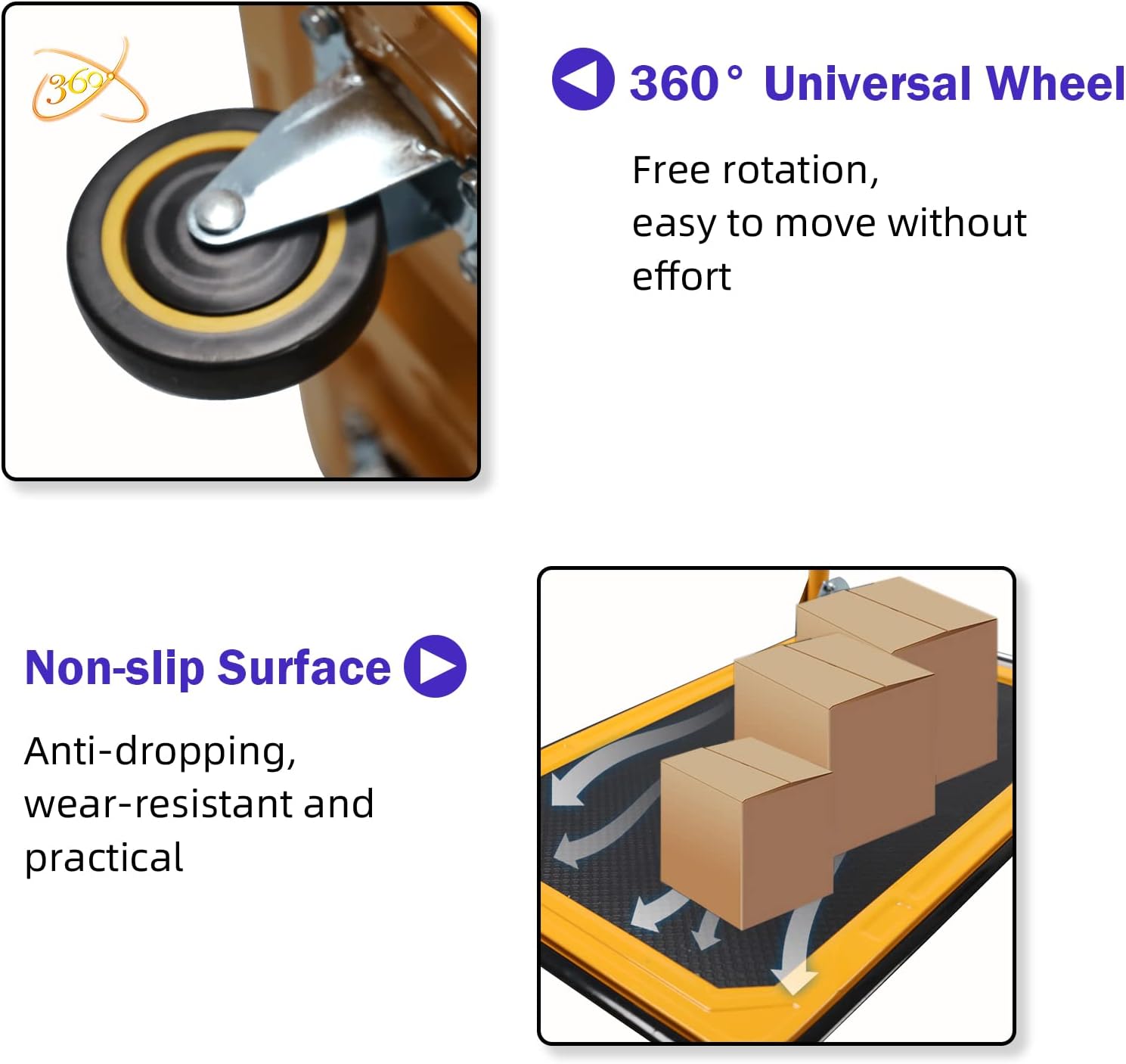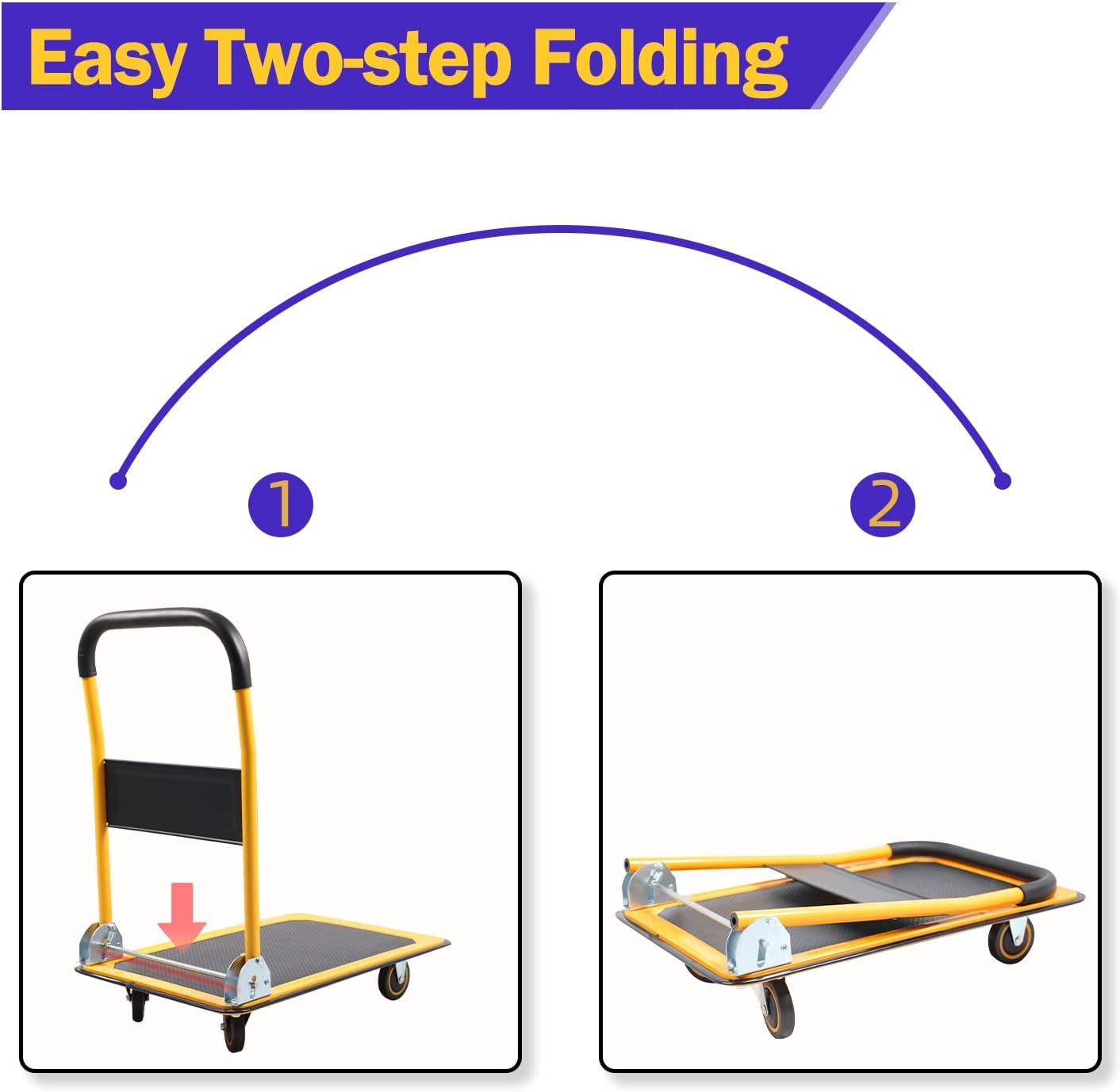 With its quick folding design, you can collapse the cart in seconds and store it in your trunk, garage, or office without taking up space. The precision-bearing wheels ensure smooth, quiet movement, making it ideal for both indoor and outdoor use.