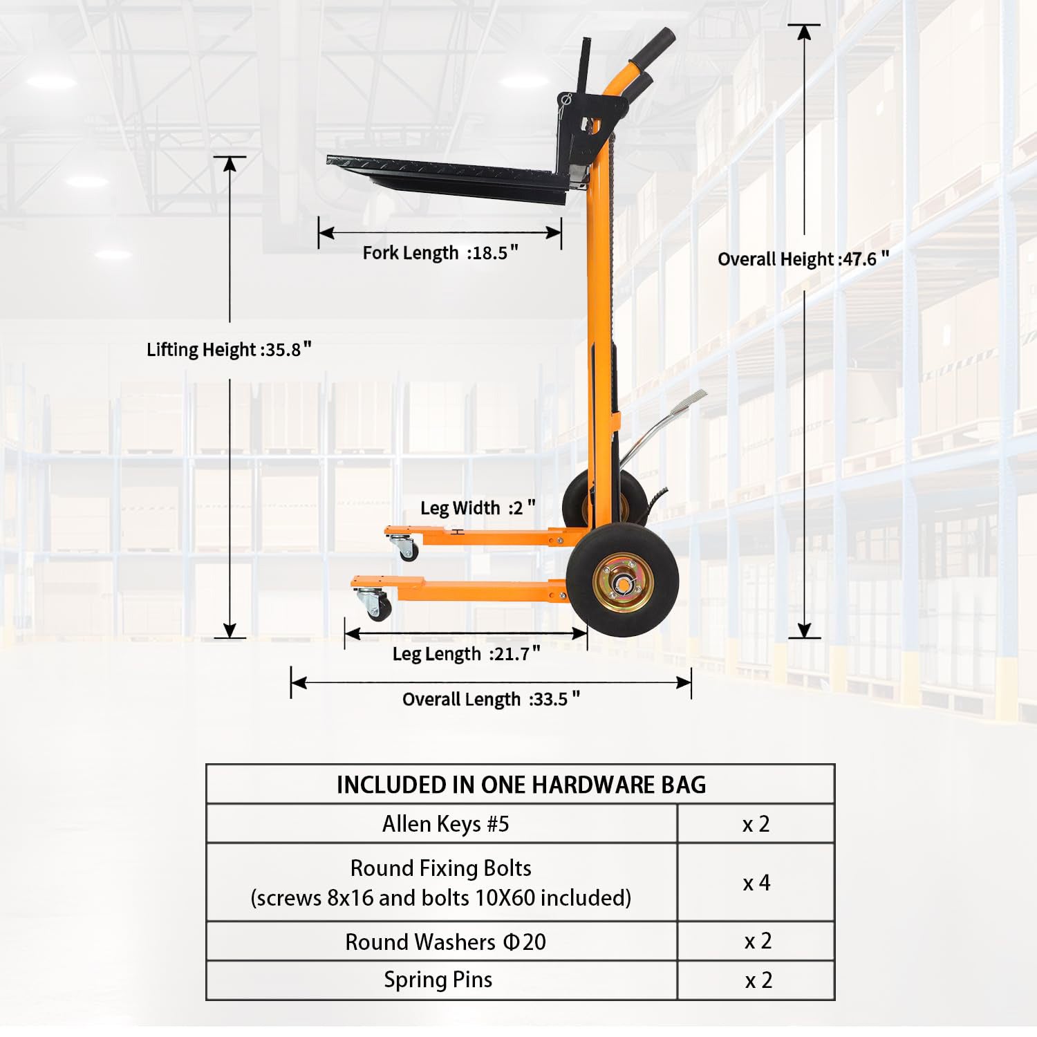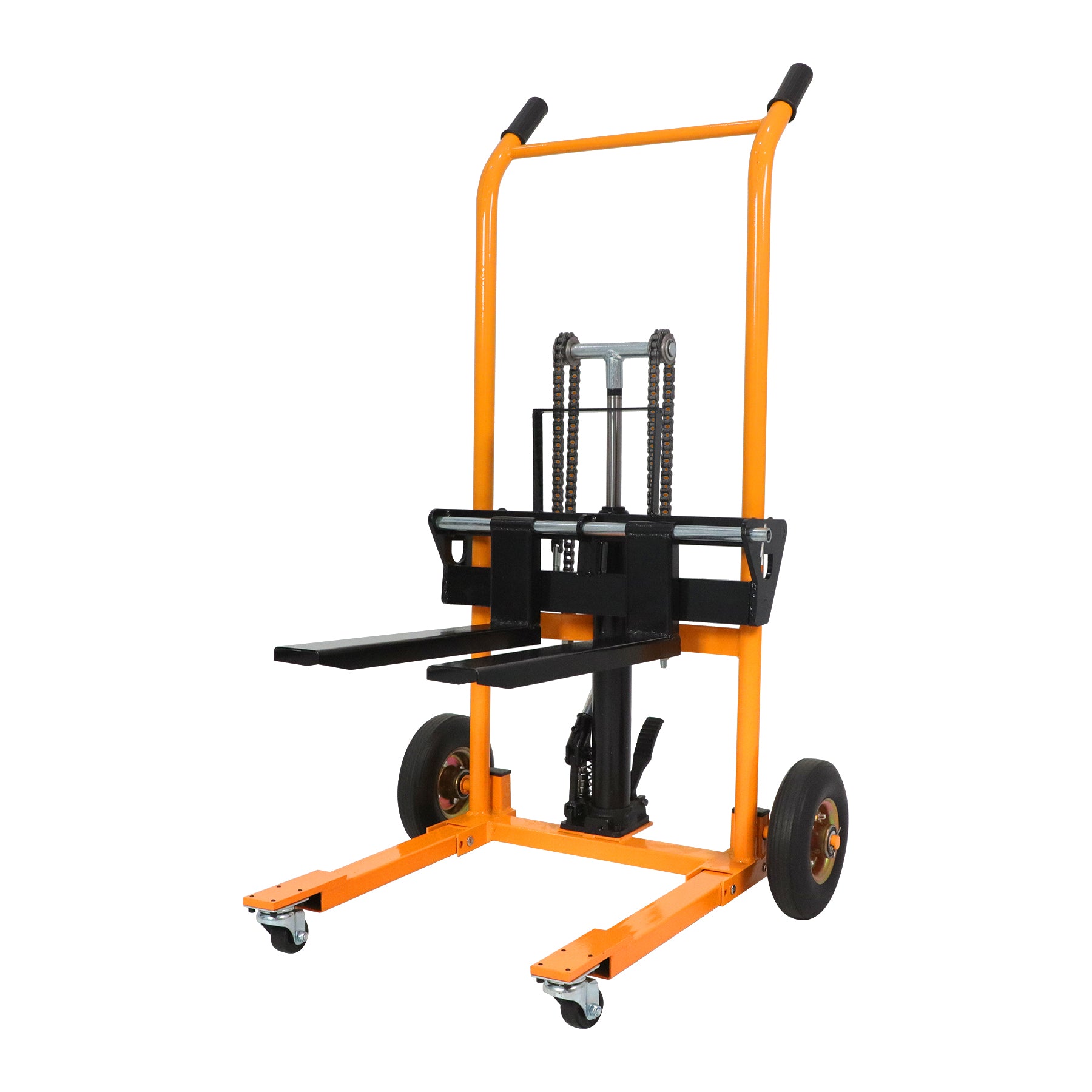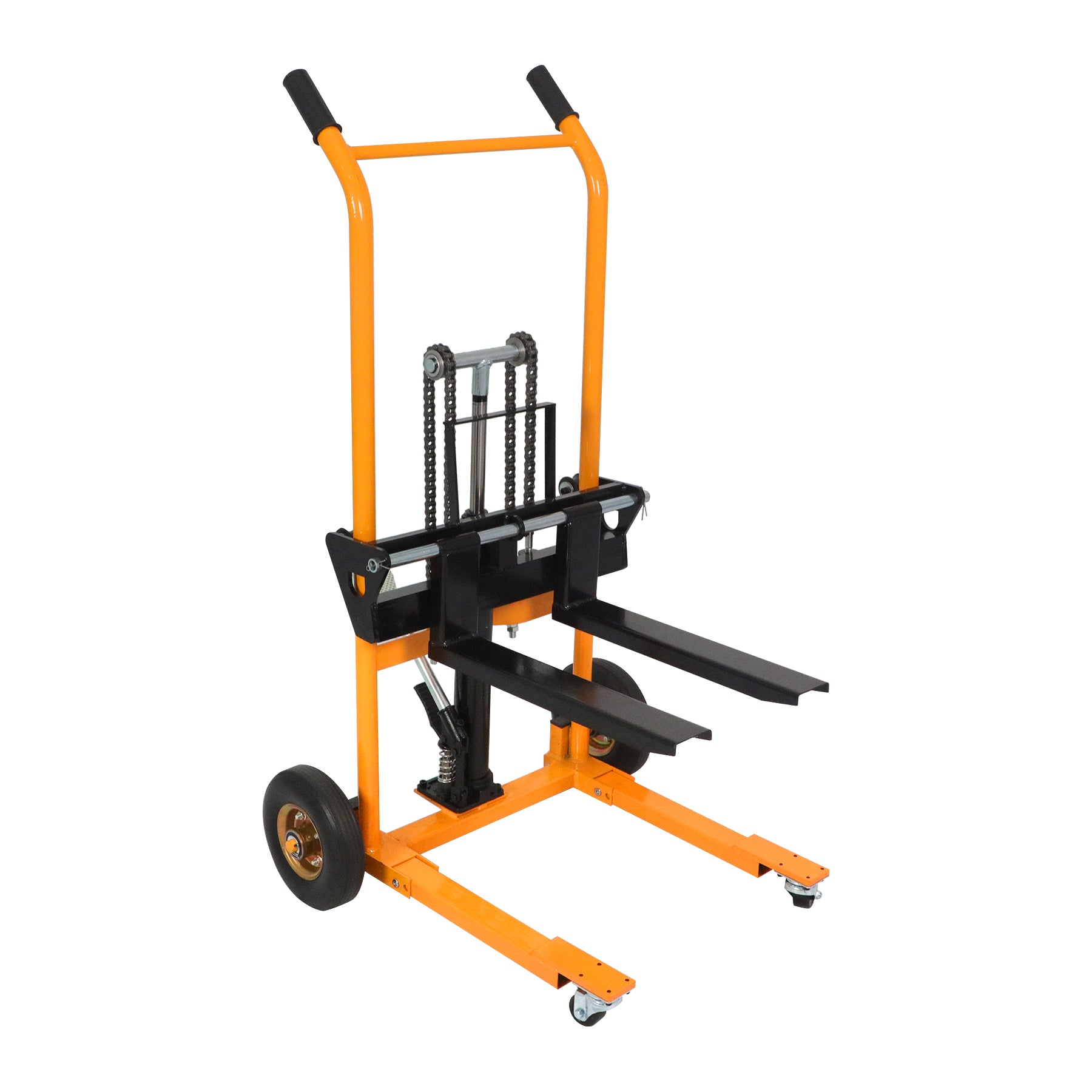 Conçu pour effectuer plusieurs tâches à la fois, il comprend à la fois des fourches amovibles pour la manutention de palettes et une plaque de levage solide idéale pour les boîtes, les conteneurs et les outils, ce qui en fait une solution parfaite pour les entrepôts, les ateliers et la logistique à petite échelle.